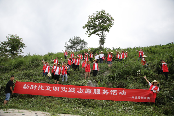 乡村全面振兴和精神文明建设 州纪委州监委开展新时代文明实践志愿服务活动 2020-07-02 09:08:10 杜玲 州纪委州监委 点击数: 6月16日,州纪委州监委的志愿者们乘车来到永顺县吉锋村开展“认领微心愿.争当圆梦人”和“油茶基地陪管除草”活动。 志愿者身穿红马褂,手拿镰刀,来在油茶基地,因连日下雨,杂草长得很高,油茶树和草什么都分不清。太阳越来越大,没有一个人叫苦叫累,齐腰深的杂草经过大家的共同努力,油茶树露了出来。志愿者龙秀全说:今天这个活动有意义,通过劳动出身汗水,既锻炼了身体又为群众做了实事。